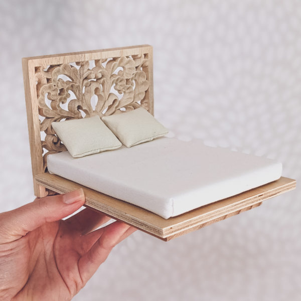 $48.00You simply cannot beat the beauty of our Boho Bedroom suite! This bedroom suite is the perfect piece to complete your dollhouse bedroom. The set includes the stunning scroll cut bedhead, a basic wooden bed base, foam mattress wrapped in white cotton fabric, two cream pillows and two wooden cubed […]
